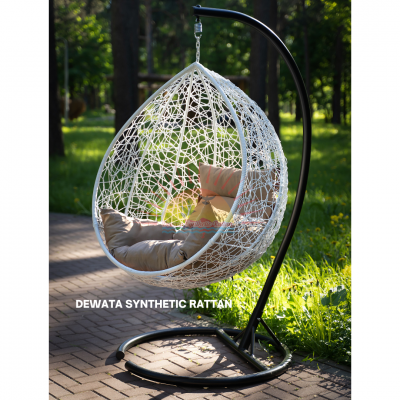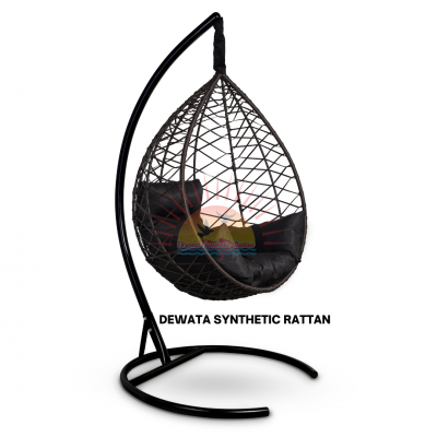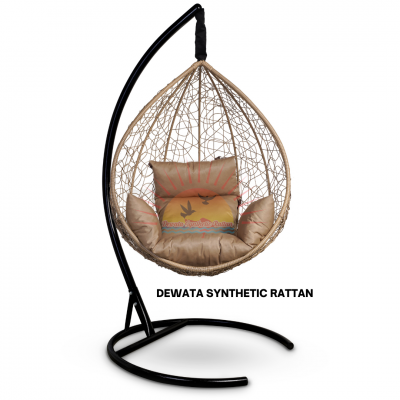 Brown Web Hanging Chair Synthetic Rattan with Stand