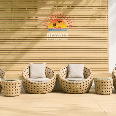 Why choose Dewata Synthetic Rattan ? We're reliable, Our products are strong, We produce by ourself so we can control our quality better, Reasonable price so our craftmens live properously. "Cool Chair Set Mata Ayam", Combining the beauty of the traditional "Mata Ayam" weaving with the long-lasting synthetic rattan that will be cuntinously recycled, we present to you the Cool Chair Set Mata Ayam. Chair size ± 85 x 85 x 80 cm, Table size ± 45 x 45 x 50 cm. contact us through WhatsApp : +62 811-3889-854.