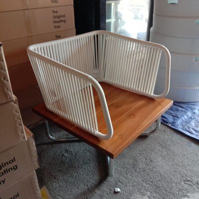 The materials are, Aluminium Frame woven with Synthetic Rattan combined with wooden seat. It last for years that even though you want to change the synthetic rattan, the aluminium frame will remain strong. Don't hesitate to ask us if you have any question in mind.