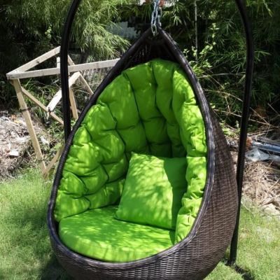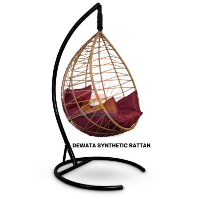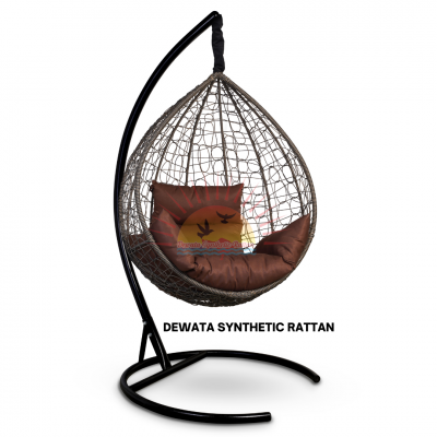 Brown Web Hanging Chair Synthetic Rattan with Stand