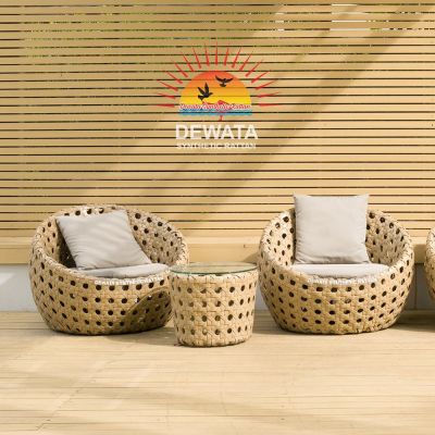 Why choose Dewata Synthetic Rattan ? We're reliable, Our products are strong, We produce by ourself so we can control our quality better, Reasonable price so our craftmens live properously. "Cool Chair Set Mata Ayam", Combining the beauty of the traditional "Mata Ayam" weaving with the long-lasting synthetic rattan that will be cuntinously recycled, we present to you the Cool Chair Set Mata Ayam. Chair size ± 85 x 85 x 80 cm, Table size ± 45 x 45 x 50 cm. contact us through WhatsApp : +62 811-3889-854.