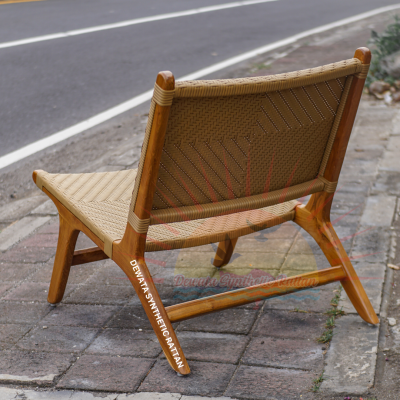 Unique Lounge Chair for your living room or your terrace. The materials are from Wooden Frame, woven with Synthetic Rattan so that it's Sturdy and Elegant. It last for years so that you may want to try change the synthetic rattan with different color. Don't hesitate to ask us if you have any question in mind.